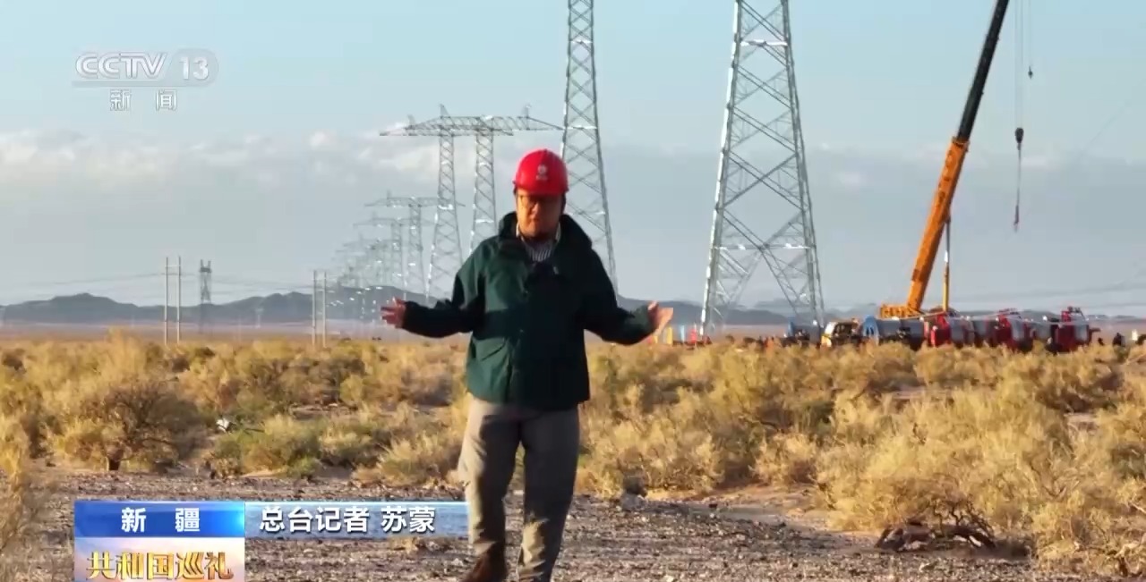 这里是地处新疆最东部哈密市的一片茫茫大戈壁,“疆电外送”特高压三通道哈重线正在紧张地建设中,2025年,这条世界级输电线路建成后,每年将向重庆市输送电能360亿千瓦时,可以满足重庆市四分之一的用电需求,而这些电能中有50%来自清洁电能。