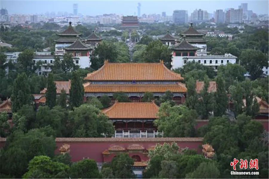 图为2024年7月26日,从景山上远眺钟鼓楼。中新社记者 田雨昊 摄