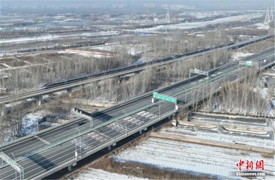 2023年 12月28日,京雄高速公路(北京段)五环至六环段开通。至此,京雄高速实现全线通车运营,由北京西南五环驾车至雄安新区实现1小时内通达。 中新社记者 贾天勇 摄