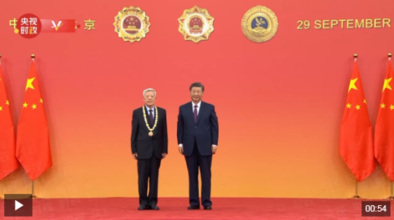 中华人民共和国国家勋章和国家荣誉称号颁授仪式9月29日上午10时在人民大会堂隆重举行。中共中央总书记、国家主席、中央军委主席习近平向“人民科学家”国家荣誉称号获得者赵忠贤颁授奖章。
