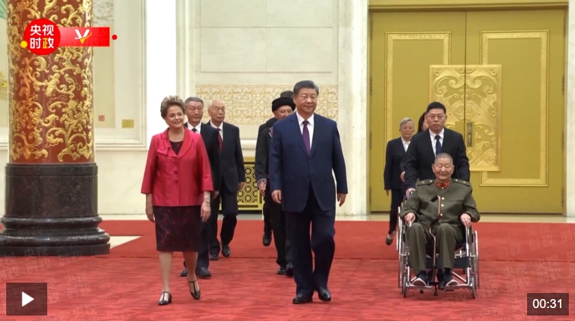 习近平指出,75年来,世界上有很多与中国人民志同道合、风雨同舟的老朋友、好朋友,今天被授予“友谊勋章”的迪尔玛·罗塞芙女士就是其中的杰出代表。中国人民永远不会忘记那些为中国发展、增进中国人民同各国人民友谊作出突出贡献的国际友人。中国人民愿携手世界各国人民,维护世界和平,促进共同发展,推动构建人类命运共同体,开创人类更加美好的未来。