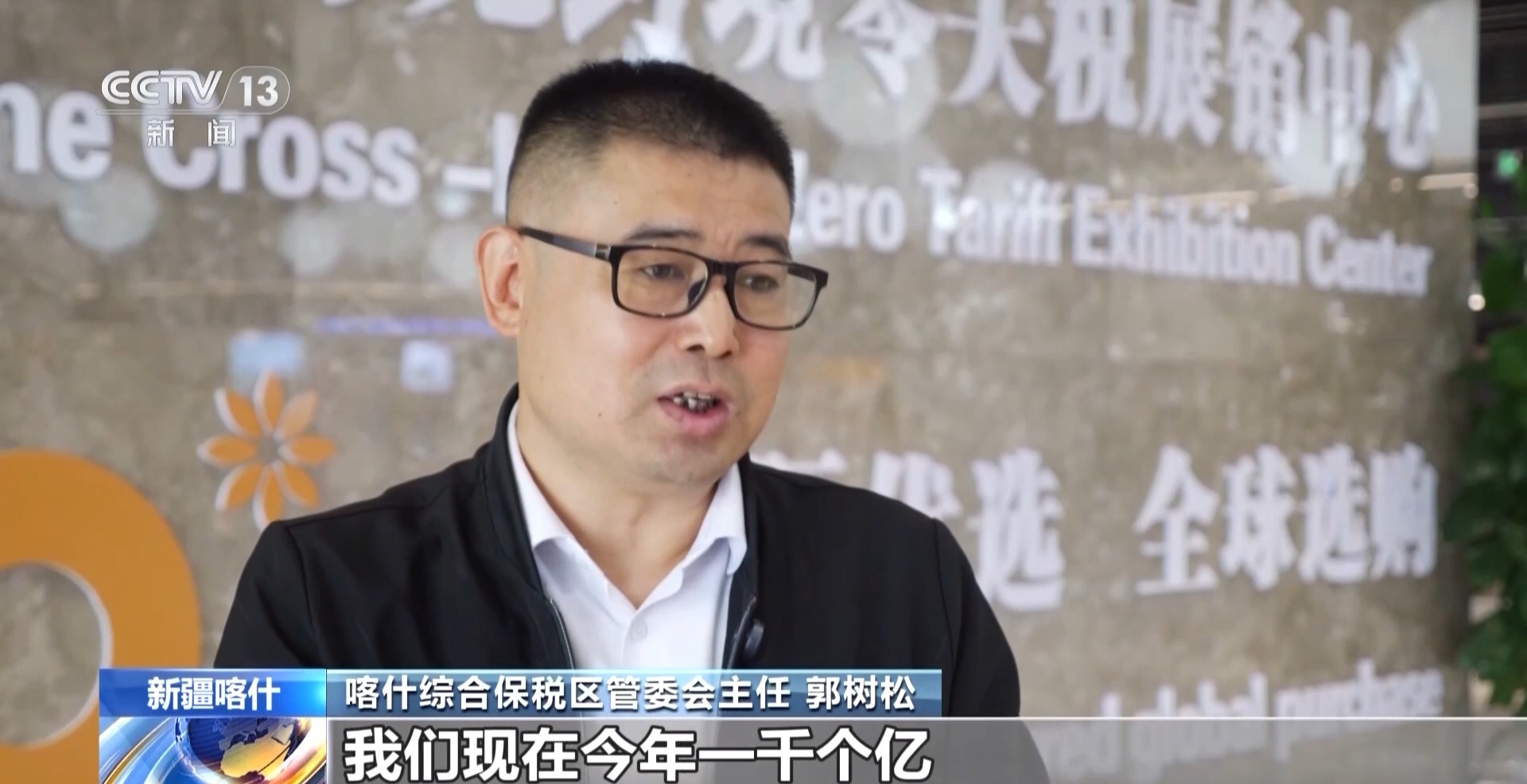 喀什综合保税区管委会主任 郭树松:喀什的外贸规模今年1000个亿,我觉得作为国家向西开放的桥头堡、黄金大通道,这里头外贸规模上十万亿都应该是可期的。