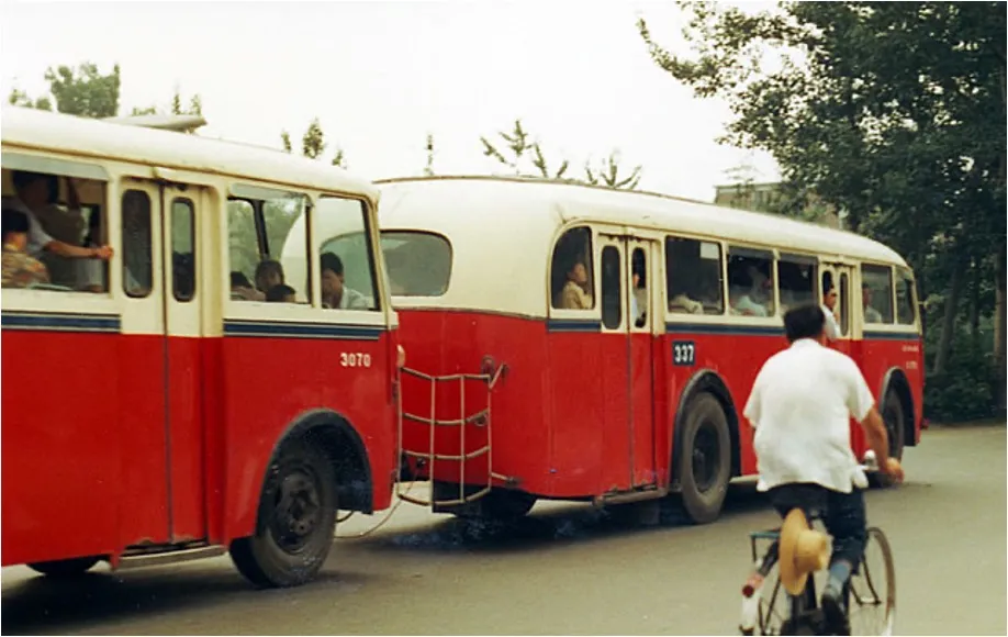 时间来到改革开放时期,这样红白相间涂装的公交车成为这个时代的特殊标记。