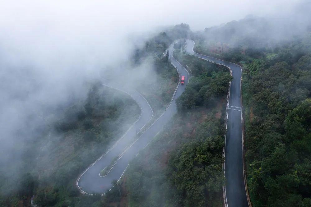△在浙江诸暨,公交车从海拔800米的桃岭村前往山下的镇区。