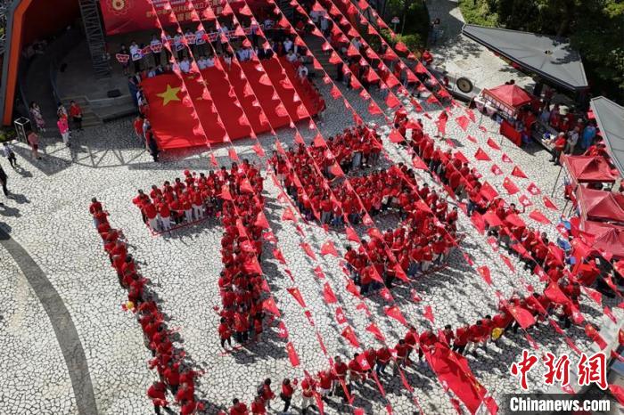 活动现场超过300人组合排列数字“75”,寓意庆祝新中国成立75周年,伴随着现场升旗仪式的进行,大家齐声高唱国歌,庆祝气氛热烈。