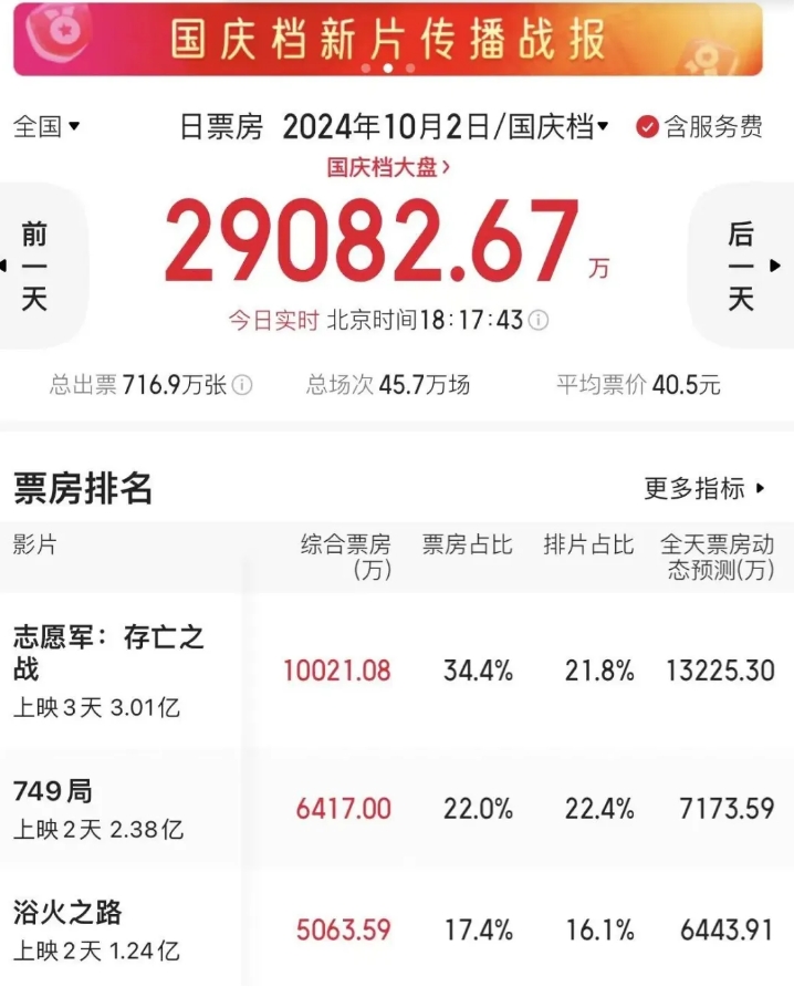 10月2日单日票房