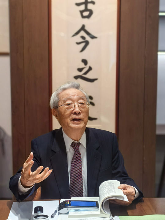 张晋藩教授在中国政法大学海淀校区图书馆蓟门法史书苑(2024年9月13日摄)。新华社发(卢云开 摄)