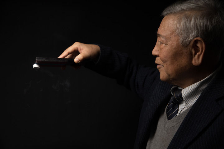 赵忠贤在中国科学院物理研究所演示磁悬浮现象(2017年1月8日摄)。新华社记者 金立旺 摄
