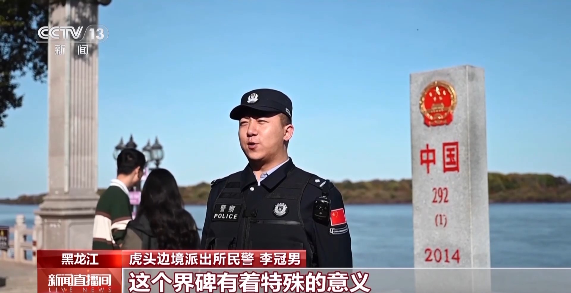 在黑龙江省虎林市虎头镇,位于乌苏里江起点处的界碑前也挤满了游客。在此执勤的鸡西边境管理支队虎头边境派出所移民管理警察李冠男向前来打卡的游客介绍起这串特别的数字。