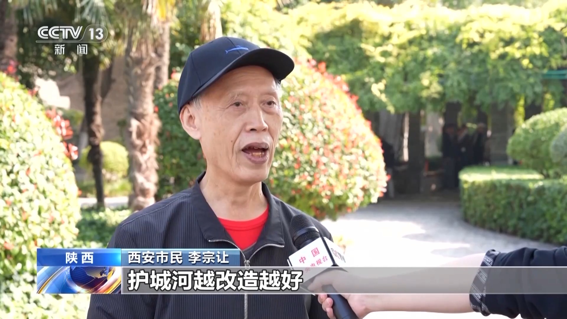 西安市民 李宗让:护城河越改造越好,环境越来越好,大家在公园唱歌,心情就非常好。