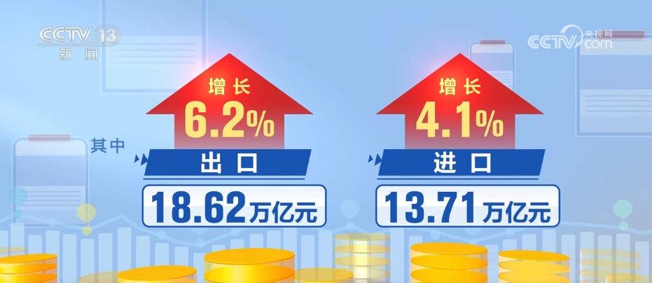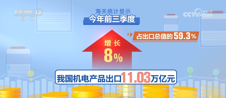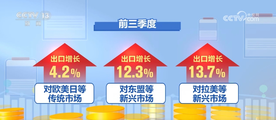 据海关统计,今年前三季度,我国进出口32.33万亿元,同比增长5.3%;其中出口18.62万亿元,增长6.2%;进口13.71万亿元,增长4.1%。