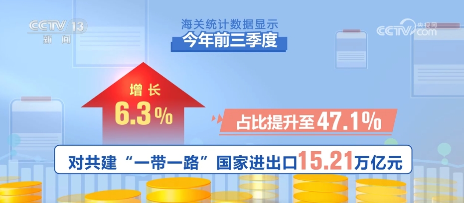 海关统计数据显示,今年前三季度,我国市场多元化稳步推进,与全球160多个国家和地区贸易实现增长。对共建“一带一路”国家进出口15.21万亿元,同比增长6.3%,占比提升至47.1%。对RCEP其他成员国进出口9.63万亿元,增长4.5%,其中对东盟进出口5.09万亿元,增长9.4%。同期,对欧盟、美国分别进出口4.18万亿和3.59万亿元,分别增长0.9%、4.2%。