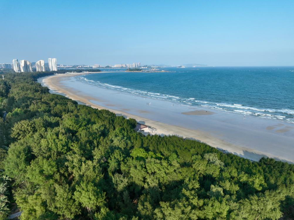 郁郁葱葱的东山县沿海防护林(无人机拍摄)。新华社记者 姜克红 摄