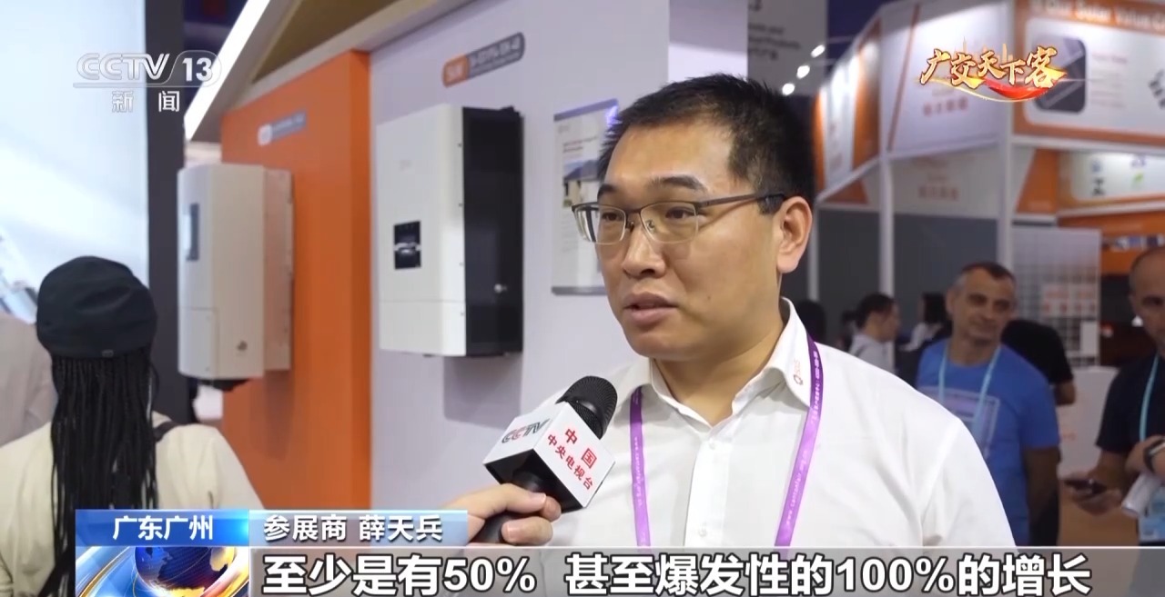 参展商 薛天兵:目前来咨询的客户主要来自于“一带一路”(共建)国家,加装光伏是接下来很重要的一个趋势方向,我们推出新品,来适应他们的电网电力需求(订单)在接下来的两年之内至少是50%,甚至爆发性的100%的增长。