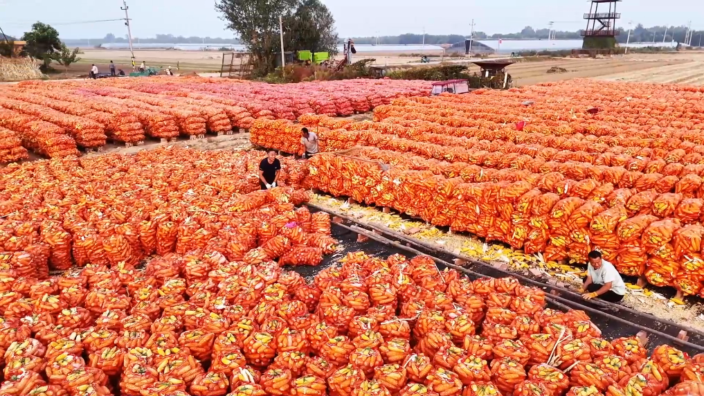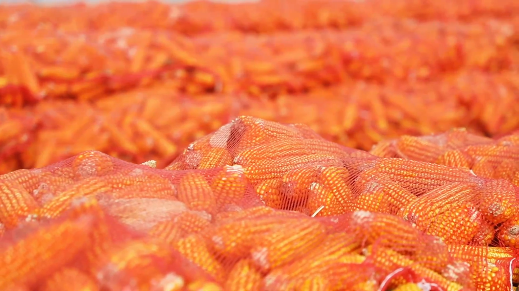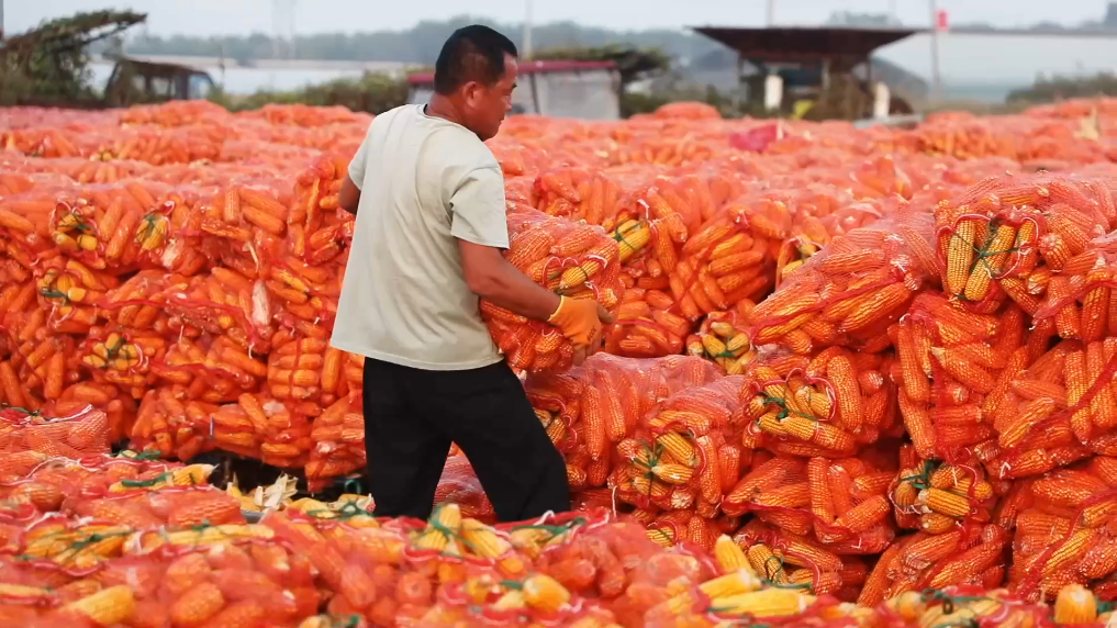 近日,在河北省馆陶县樊堡村粮食种植大户许延岭的玉米试验田基地里,一袋袋的玉米整齐码放。