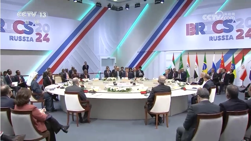 当地时间10月23日上午,金砖国家领导人第十六次会晤在喀山会展中心举行。俄罗斯总统普京主持会晤。中国国家主席习近平、巴西总统卢拉(线上)、埃及总统塞西、埃塞俄比亚总理阿比、印度总理莫迪、伊朗总统佩泽希齐扬、南非总统拉马福萨、阿联酋总统穆罕默德等出席。