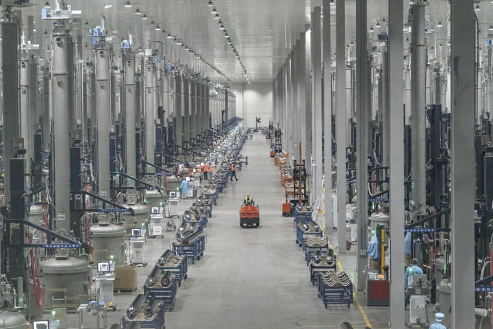 这是四川省乐山市京运通新材料科技有限公司的单晶硅棒生产车间(2023年3月16日摄)。新华社记者 唐文豪 摄