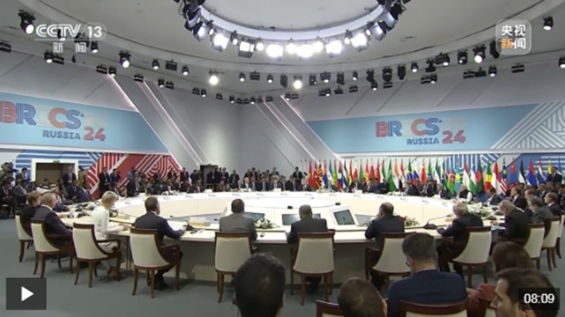 当地时间23日上午,金砖国家领导人第十六次会晤在喀山会展中心举行。这是“大金砖合作”的一次盛会。