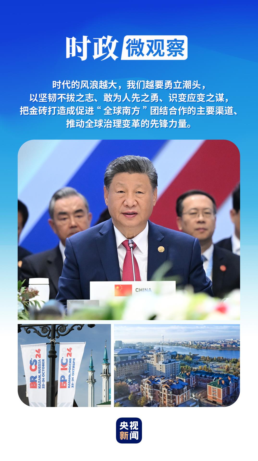 喀山之行的一系列密集活动中,习近平主席深刻阐释“精神力量”与“挺膺担当”,为开创“大金砖合作”高质量发展新局面引领航向。《时政微观察》为你解读。