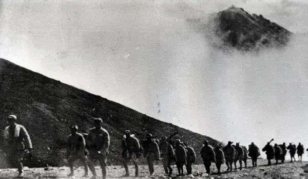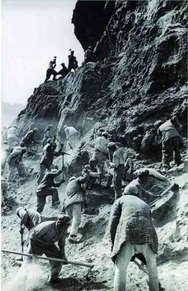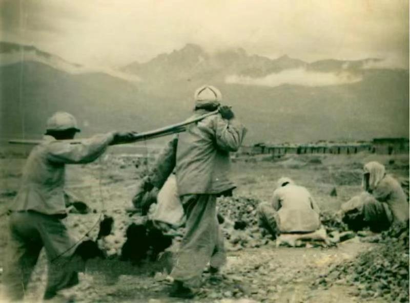 △彭家英(右一坐者)与战友在甘孜机场施工现场