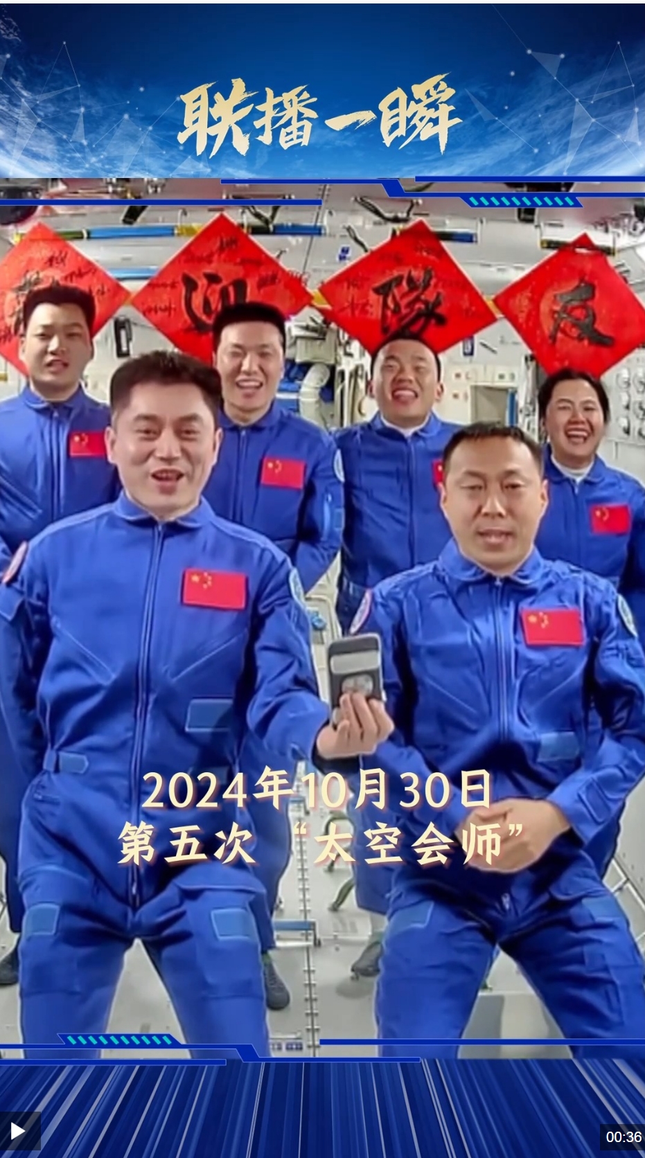 在太空交班!10月30日中午,在轨执行任务的神舟十八号航天员乘组顺利打开“家门”,欢迎远道而来的神舟十九号航天员乘组入驻“天宫”。第五次“太空会师”顺利完成!跟联播一瞬一起回顾中国空间站的五次“会师”瞬间。