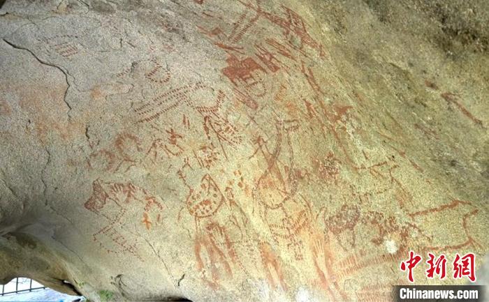 新疆哈巴河县多尕特洞穴彩绘岩画。哈巴河县融媒体供图