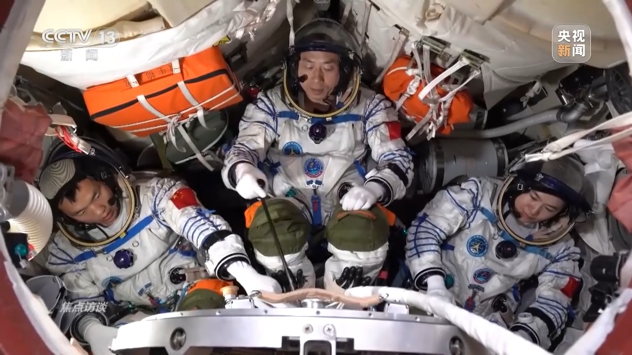 航天员 蔡旭哲:我们还要进行一些重点对操作能力以及操作规范、提高操作品质的训练,主要是规避操作带来的风险。另外,在轨应急突发情况的处置,也作为我们训练的重点。