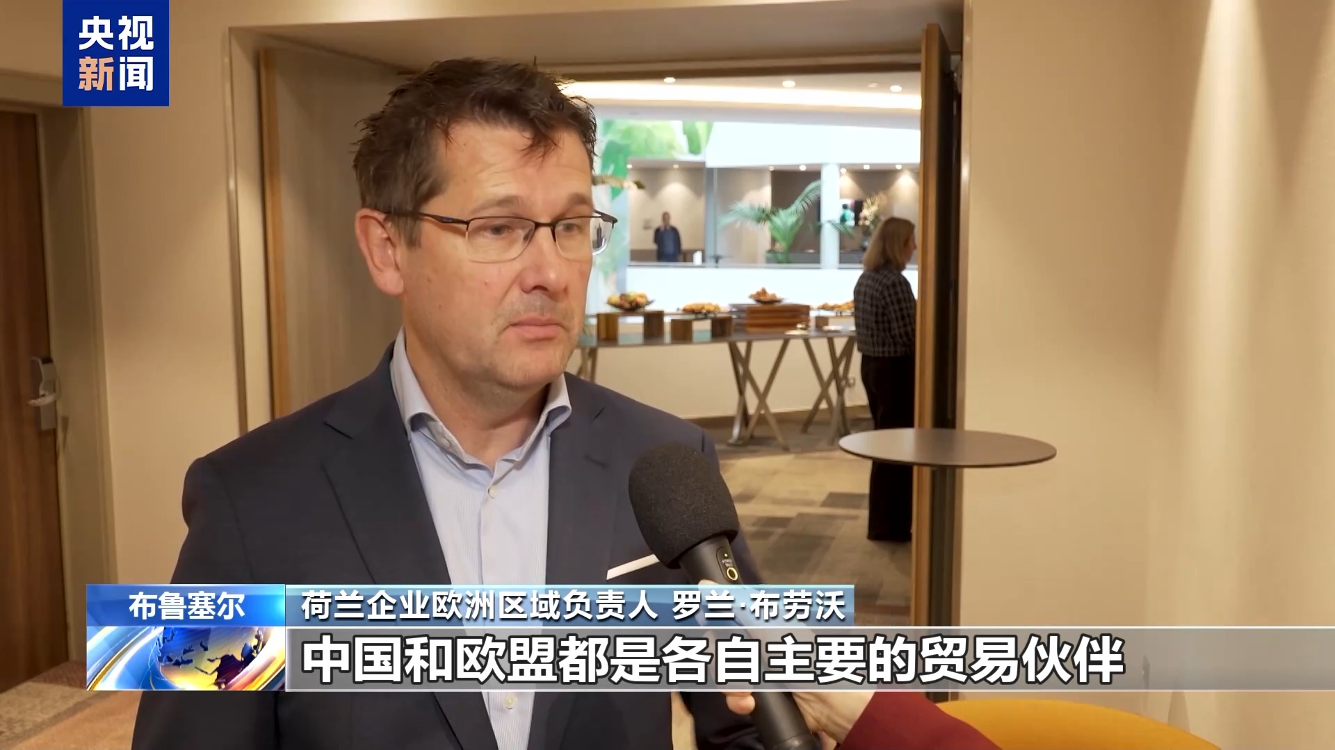荷兰企业欧洲区域负责人 罗兰·布劳沃:中国和欧盟都是各自主要的贸易伙伴,所以我认为双方的摩擦会造成损害。我认为达成一致的协议符合双方的最大利益。当然,谈判对双方来说都非常重要,我认为聚在一起解释、了解主要关切是什么非常重要,把所有事情摆到桌面上来,相互理解、相互靠近,希望最终达成协议。