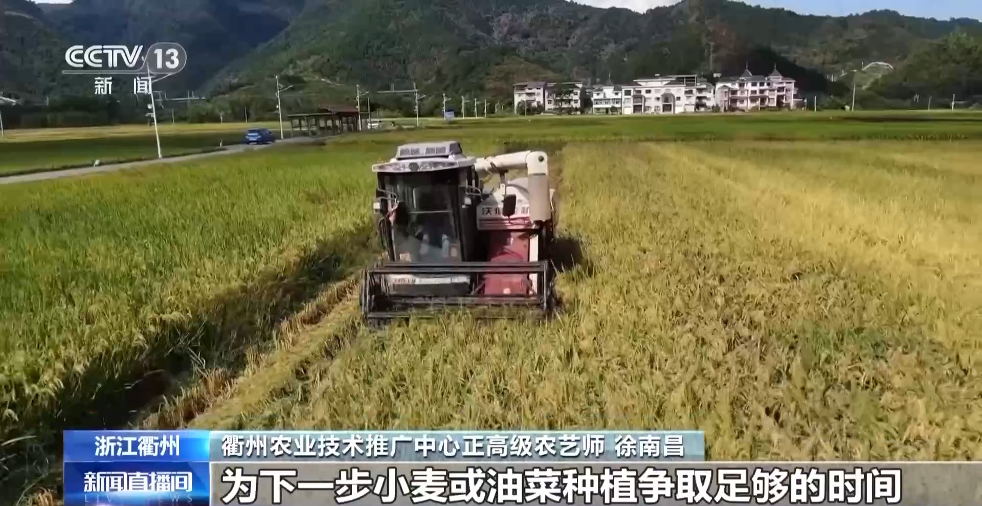 衢州农业技术推广中心正高级农艺师 徐南昌:种粮大户一定要抢抓晴好天气,尽快完成晚稻收割,为下一步小麦或油菜种植争取足够的时间。