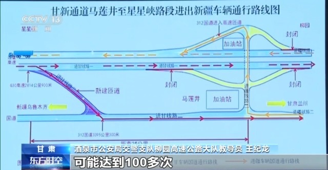总台记者 柴世文:我身后是位于国道312线上的马莲井服务区,我的左手边是连通东西向的一个大动脉G30连霍高速。马莲井服务区的加油站,是国道包括高速上下170公里内唯一的一个加油站。不管是东去还是西来,这两个道路上四个方向的车,如果要加油,都要汇集到这个服务区附近,所以极大影响了通行效率。