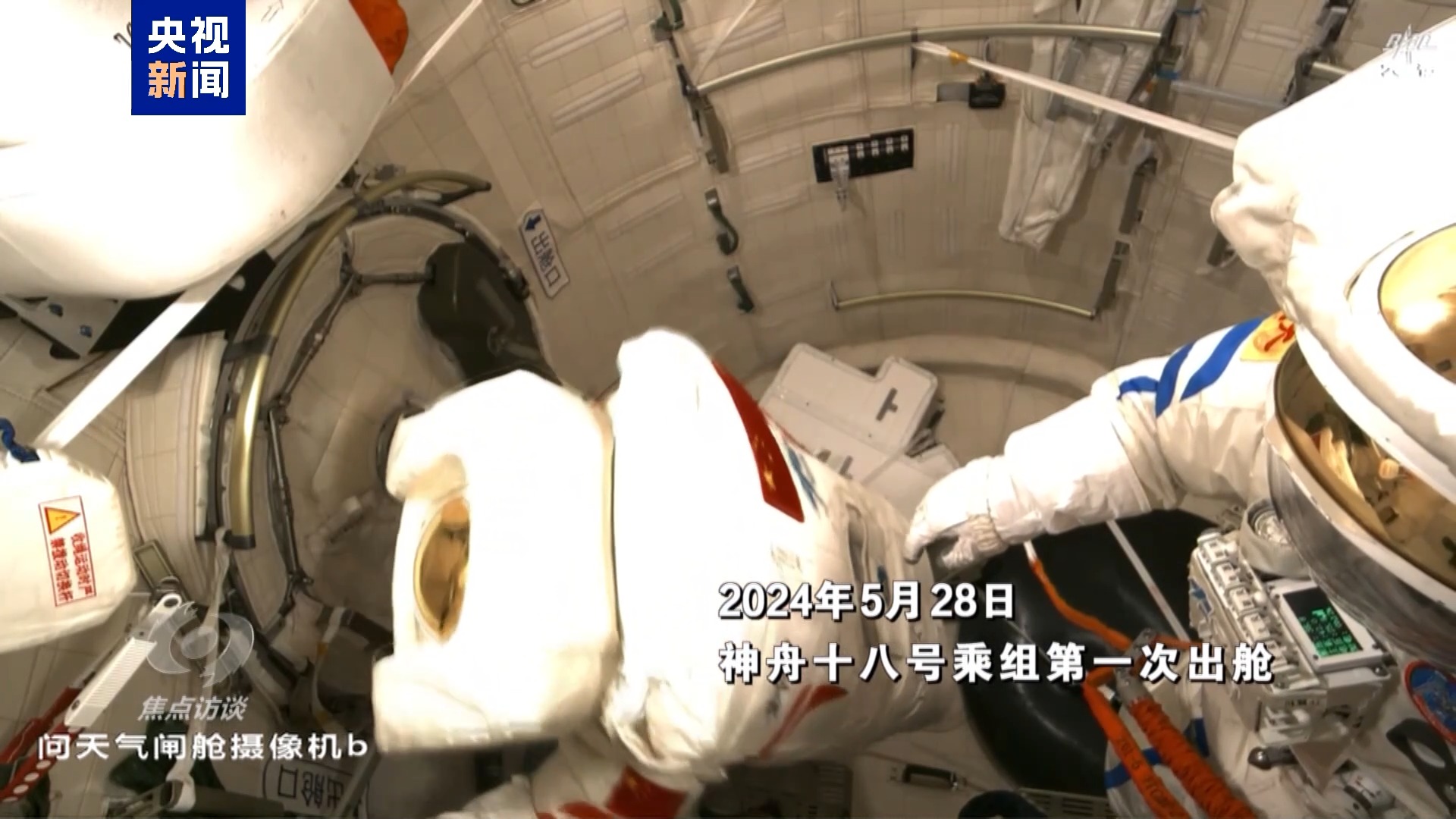 2024年5月28日,神舟十八号乘组开始第一次出舱活动。航天员叶光富、李广苏从问天实验舱的出舱口陆续进入太空。
