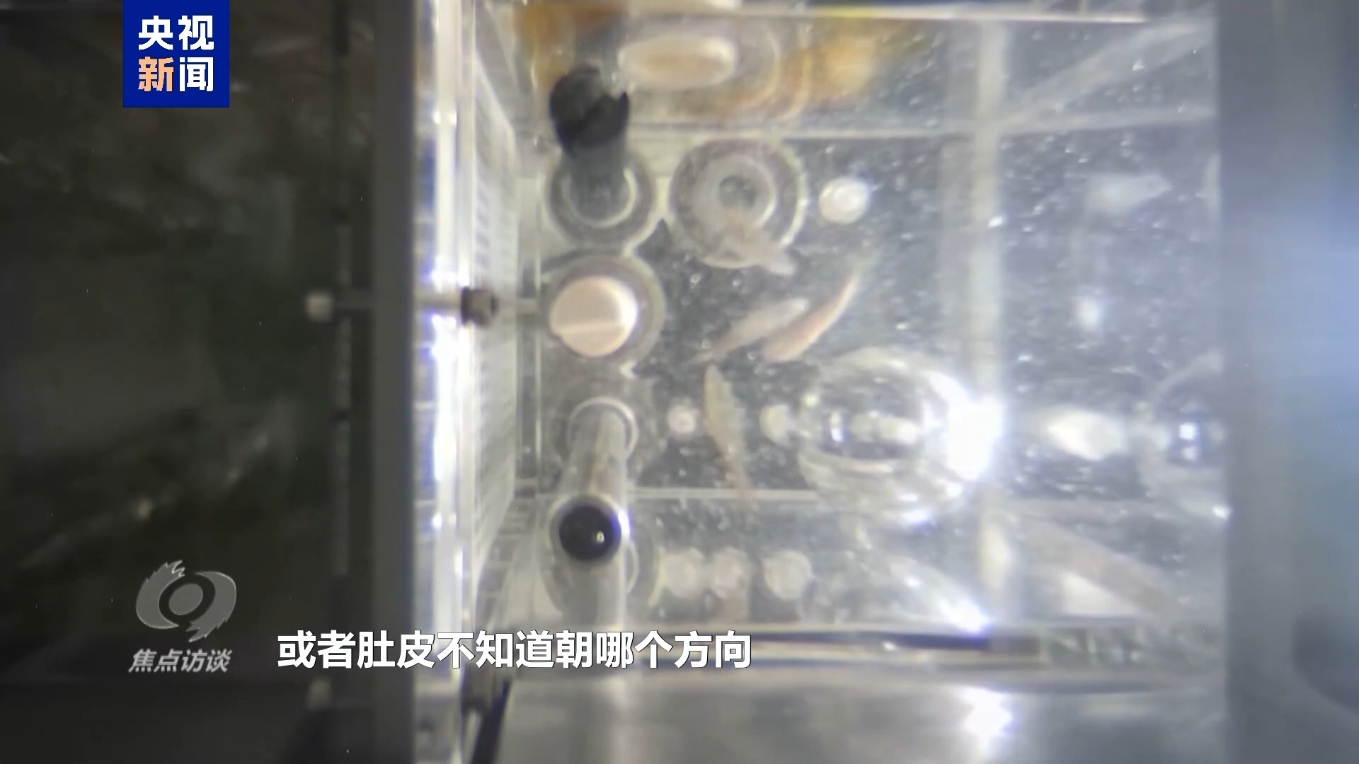 中国科学院水生生物研究所研究员 王高鸿:本来斑马鱼都有一个背腹面。在天上运动的时候,它们有时候肚皮朝上或者肚皮不知道朝哪个方向;另一方面它就转圈,感受不到重力的方向了。