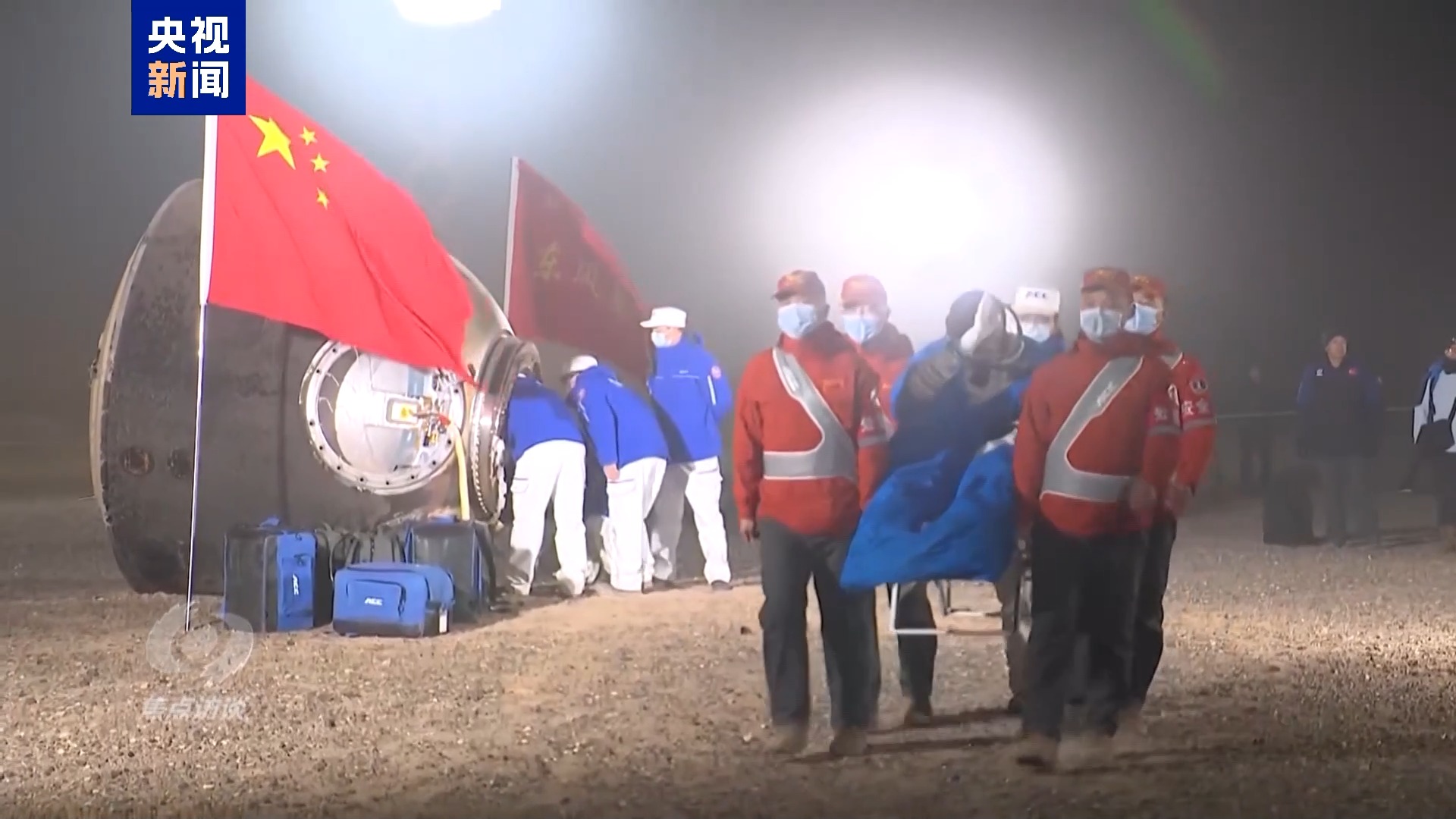 11月4日凌晨,内蒙古额济纳旗大漠深处,天边划过的这颗星,正是按照计划返回地球的神舟十八号飞船。1时24分,神舟十八号飞船顺利着陆。5分钟后,搜救回收分队的队员就到达了飞船边,在完成必要的工作后,三位航天员陆续出舱。