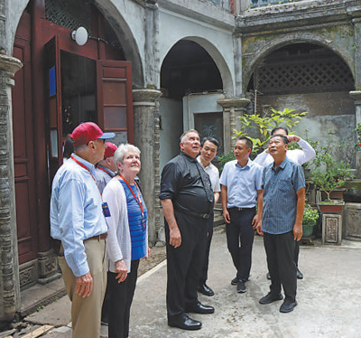 飞虎队代表团成员参观飞虎队在福建长汀的驻扎地黄氏丽园。