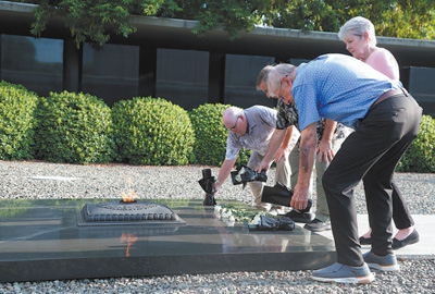 飞虎队代表团成员向南京大屠杀死难者献上白菊。