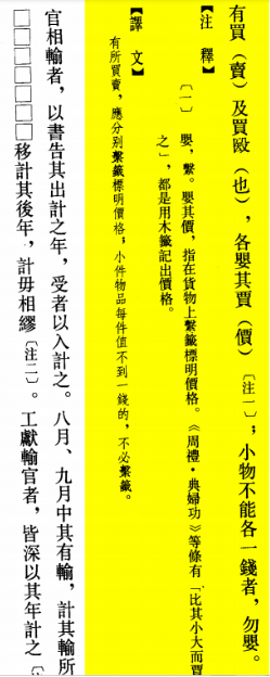 △“买卖的时候,应分别挂上价格标签标明价格,小件物品每件不到一钱的,不必悬挂标签。”