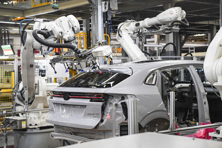 2024年7月3日在长安汽车重庆两江工厂总装车间拍摄的智能化生产现场。新华社记者 王全超 摄