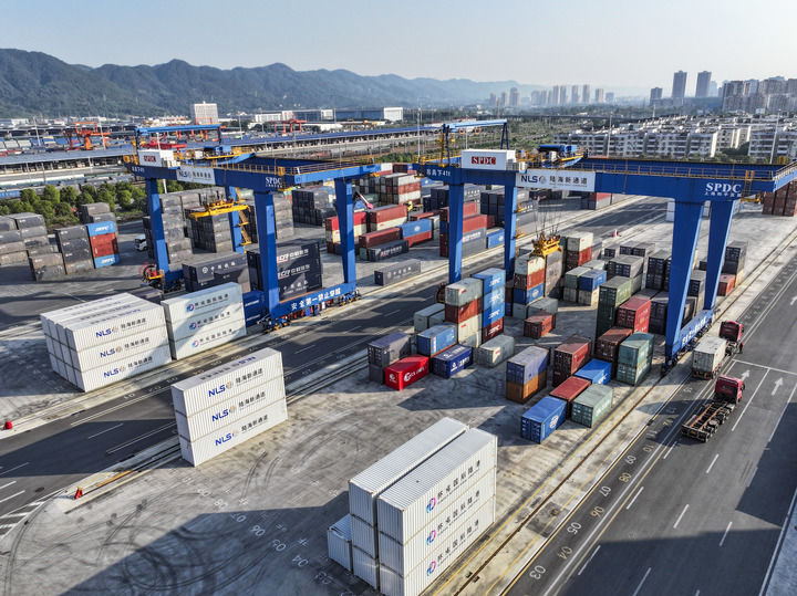 10月25日,一列装载东盟货物的“东盟快班”驶出重庆团结村中心站,预计最快2周后将抵达波兰。通过连接西部陆海新通道与中欧班列,成渝地区进一步壮大开放贸易。今年前三季度,重庆经西部陆海新通道运输货物货值同比增长80%。