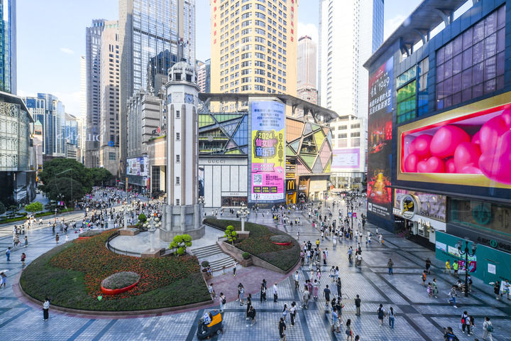 2024年8月21日,游客在重庆市渝中区解放碑商圈休闲、逛街。新华社记者 王全超 摄