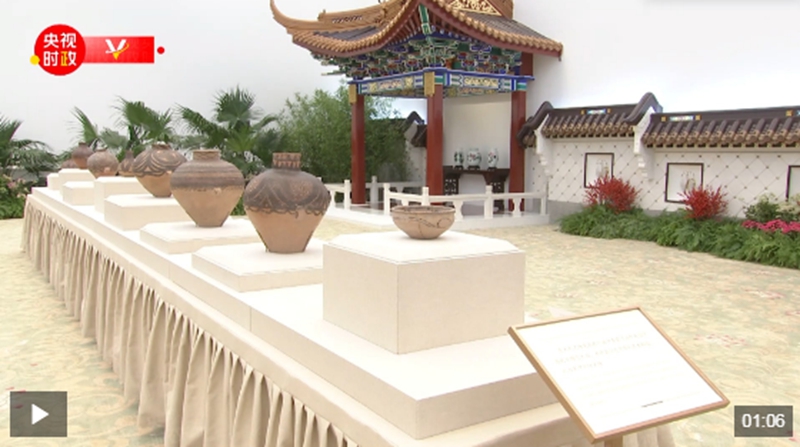 马塔雷拉向习近平介绍了意方向中方返还的在其国内文物市场缴获的流失文物代表——马家窑文化陶器。