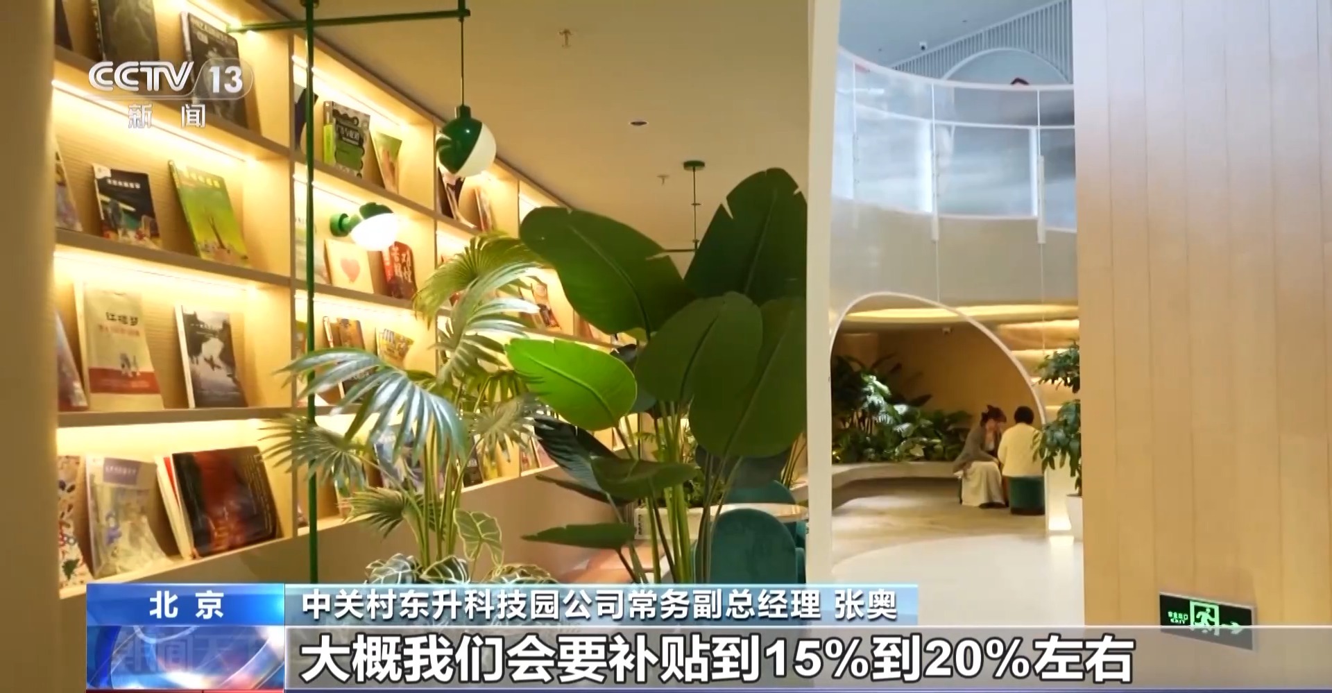 中关村东升科技园公司常务副总经理 张奥:我们帮助企业的人才在周边汇集到了很多房源,每一套的价格大概我们会要补贴到15%到20%左右。