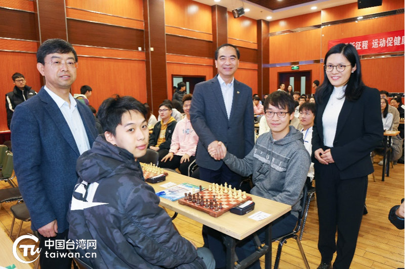 龚旗煌、赵爱国(左1)为参赛选手开棋,侯逸凡等嘉宾和选手见证。(中国台湾网发)