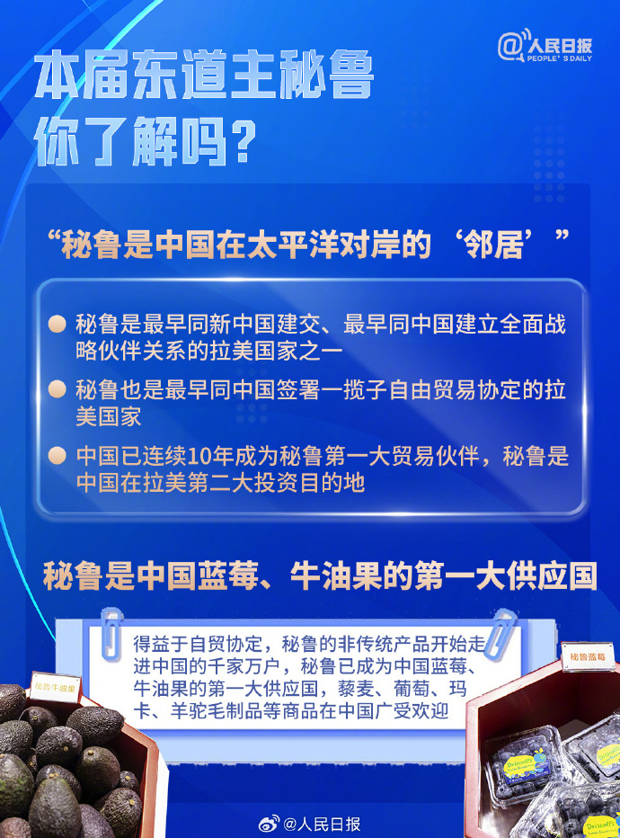 国家主席习近平将于11月13日至17日赴利马出席亚太经合组织第三十一次领导人非正式会议并对秘鲁进行国事访问。什么是亚太经合组织(APEC)?你对本届APEC东道主秘鲁了解多少?你爱吃的蓝莓牛油果可能来自这国……9图知识帖↓↓转存了解!