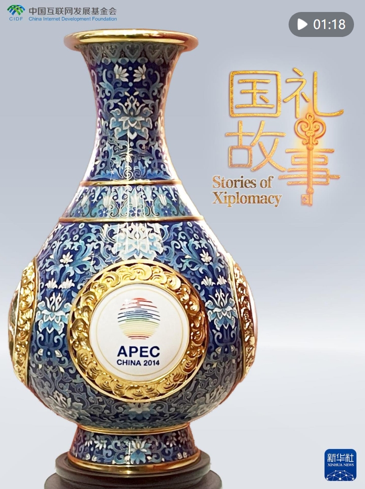 景泰蓝是中国传统工艺美术的瑰宝,也是东西方文化交流的璀璨结晶。2014年11月,亚太经合组织(APEC)第二十二次领导人非正式会议在北京举行,习近平主席选定了一件名为“四海升平”的景泰蓝赏瓶作为国礼,赠予参会的各经济体领导人。