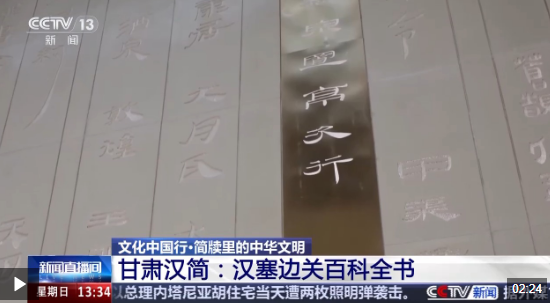 甘肃简牍博物馆讲解员 赵子婧:刚好两枚里程简的路线接力勾勒出古丝绸之路的东段路线,为我们揭秘了2000多年前丝绸之路的真实走向。在第三十八届世界遗产大会上,为我国和哈萨克斯坦、吉尔吉斯斯坦三国联合申遗的“丝绸之路:长安——天山廊道的路网”项目,也入选了世界遗产名录,提供了真实有效的历史依据。
