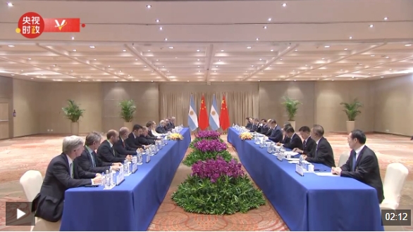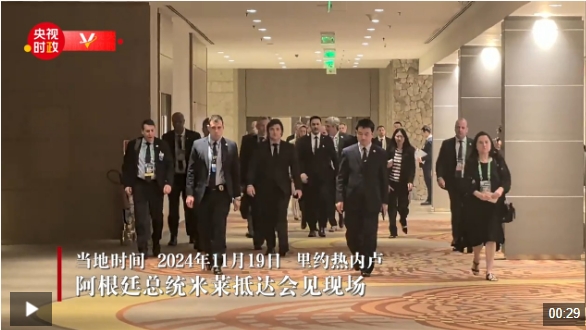 当地时间11月19日,国家主席习近平在里约热内卢出席二十国集团领导人峰会期间会见阿根廷总统米莱。
