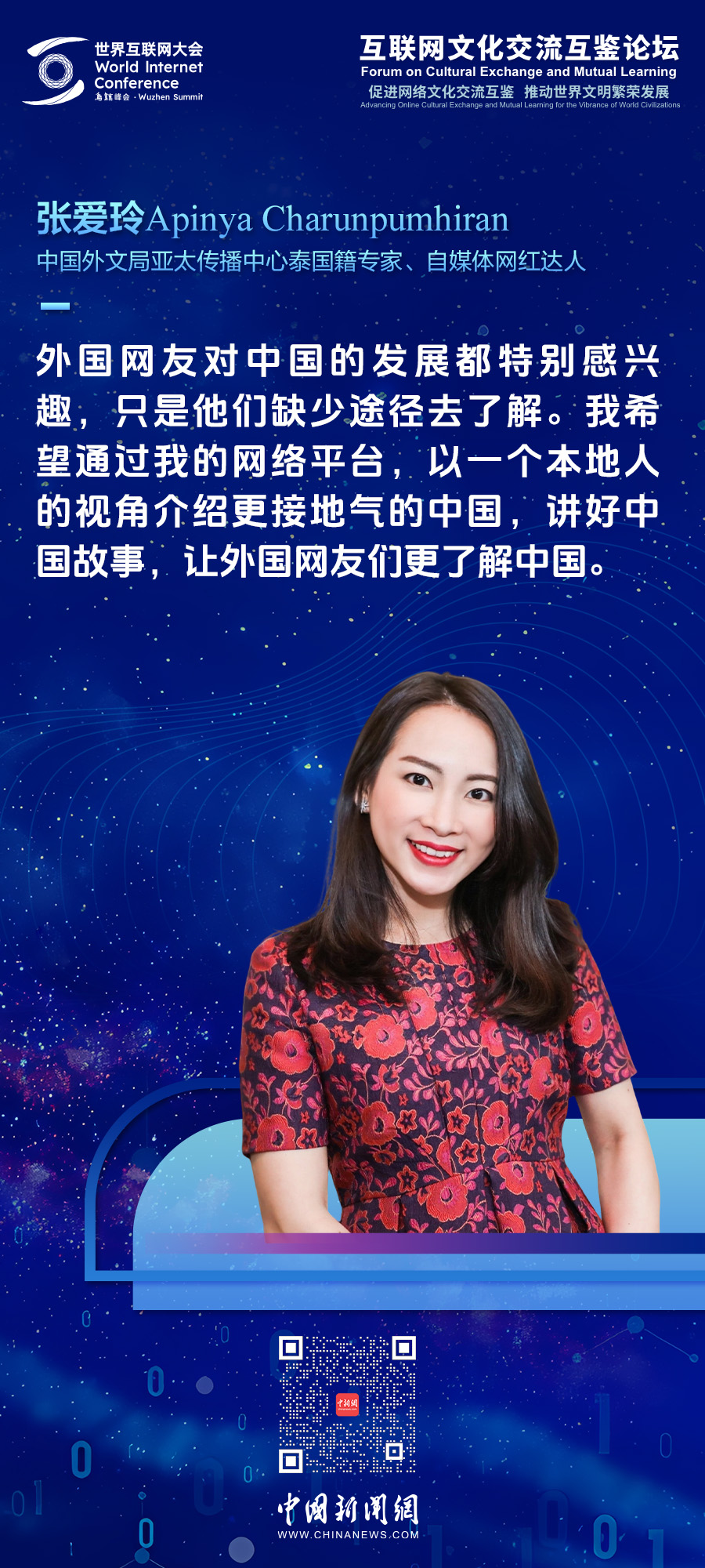 中新网乌镇11月21日电(林卓玮)2024年11月,浙江乌镇,这个历史悠久的水乡小镇再次成为全球互联网行业关注的焦点。21日,在世界互联网大会乌镇峰会互联网文化交流互鉴论坛上,中泰文化推广达人张爱玲(Apinya Charunpumhiran)以其独特的视角和亲身经历,向与会者展示了如何利用新媒体平台,将一个真实、多元的中国展现给世界。