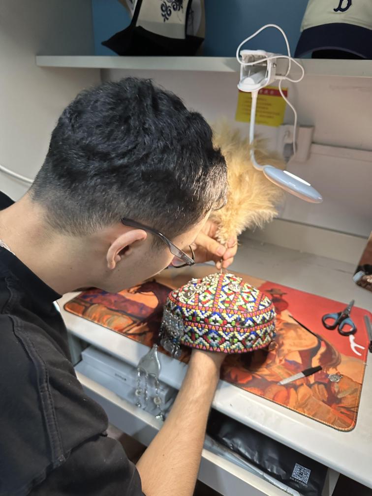 进入大学学习工业设计专业后,唐宝开始对第二批国家级非遗“哈萨克族服饰”为代表的民族传统文化艺术有了更多思考。在老师们的支持下,他在学校成立了“哈萨克非遗工坊”,以建立数据库的方式专注搜集设计、活化利用非遗传承。