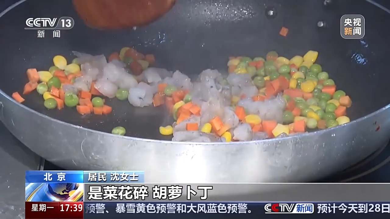 居民 沈女士:品种挺丰富,我尝了尝水晶虾仁炒饭,是菜花碎、胡萝卜丁、肉丁,还有豌豆。没有米饭,但是能吃饱。口感不错,升糖慢,餐后两个小时测了测血糖是7.7。