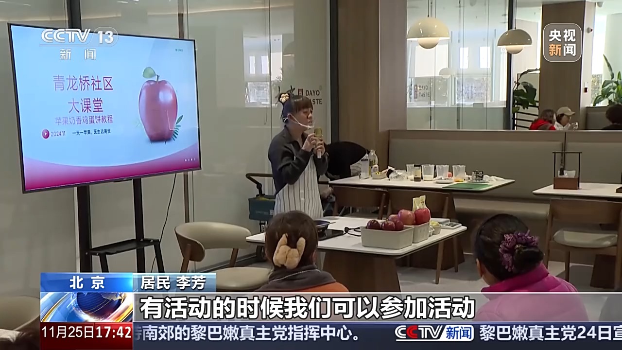 居民 李芳:充分利用这个环境,平时可以吃饭,有活动的时候我们可以参加活动。我觉得挺幸福的,能把老年人业余生活组织起来,丰富多彩。